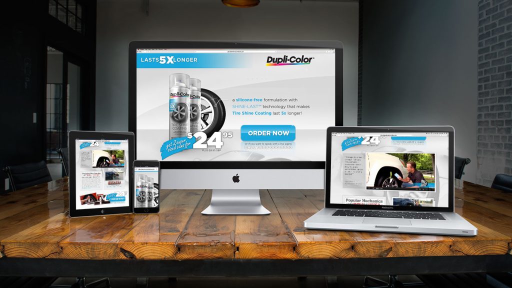 To craft the direct response campaign, we started with a web initiative connected to a dedicated website. The website’s branding was consistent with Dupli-Color’s standards while also employing the industry tactics for direct response sales. We shot and edited a commercial spot for Tire Shine with Matt Steele from Truck U, which aired on Velocity and Spike TV. We created video and CGI content to highlight the benefits of Tire Shine that set it apart from the established competitors in the segment. Within the time we allotted for the direct response campaign, we were able to secure enough traction for Dupli-Color to successfully sell into the top auto retailers.
