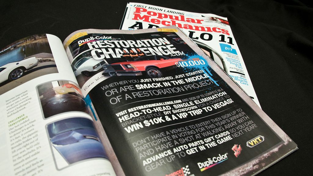 The next year, we expanded the Restoration Challenge by adding categories that participants could enter, even if they only restored part of their vehicle (interior, exterior, wheels, etc.). We continued to promote through broadcast, as well as placing ads in the Popular Mechanics print magazine.