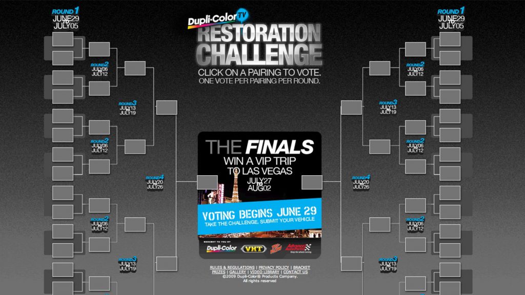 The Restoration Challenge manifested in three different versions over three years, but each iteration of the competition was based on a “March Madness” style bracket. Each week, votes were collected to narrow choices down until we could announce a winner. Participants shared Dupli-Color posts in order to earn votes, which resulted in increased reach and opportunities to gain new followers and contacts.